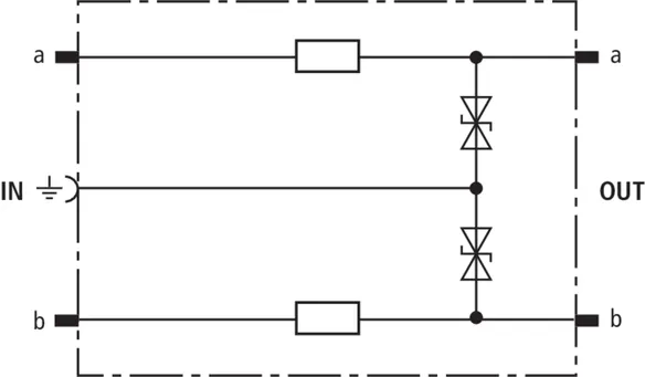 Protective plug (one pair), energy-coordinated with DRL plug-in SPD block, for use as single-stage protective device for terminal equipment with decoupling impedances. Ideally suited for signal circuits sharing a common reference potential. Earthing via EF 10 DRL. For disconnection blocks or DRL plug-in SPD blocks only.