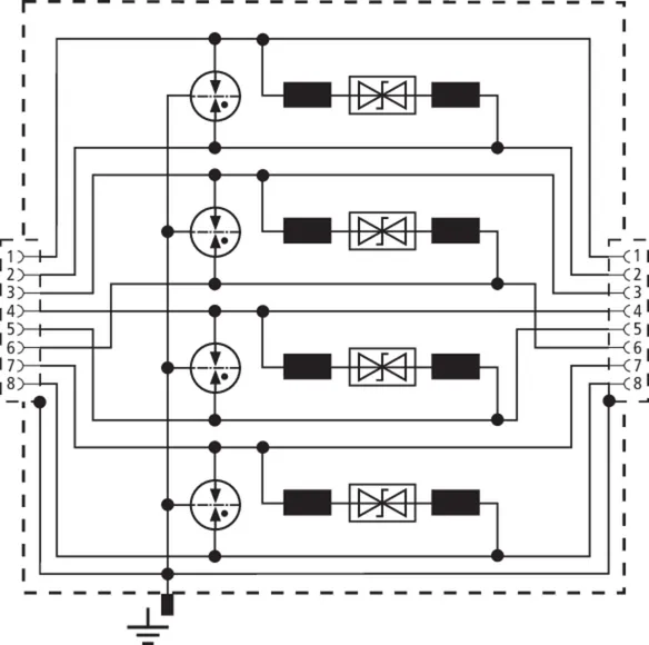 | D1 Lightning impulse current (10/350 µs) per line (Iimp ) | 1 kA |
