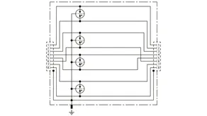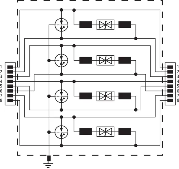 Universal arrester for Industrial Ethernet, Power over Ethernet (IEEE 802.3 compliant up to PoE++ / 4PPoE) and similar applications in structured cabling systems according to class E up to 250 MHz. Protection of all pairs by means of powerful gas discharge tubes and one adapted filter matrix per pair. Fully shielded type with sockets for DIN rail mounting (up to 1 Gbit Ethernet).