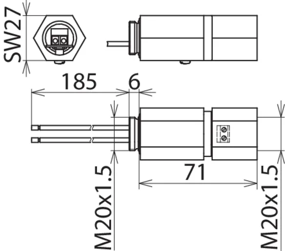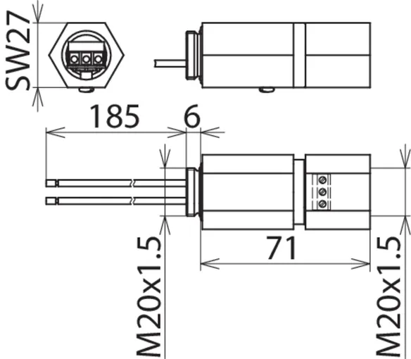 For mounting on (field / device side) M20 x 1.5 male thread