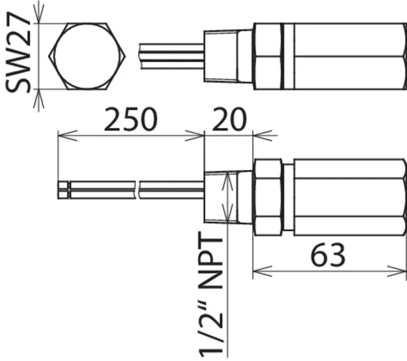 For mounting on (field / device side) 1/2-14 NPT female thread / 1/2-14 NPT male thread