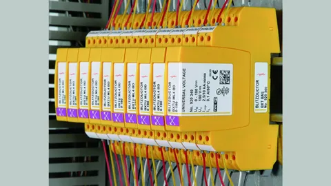 Space-saving combined lightning current and surge arrester module with actiVsense technology and RFID LifeCheck for protecting two pairs (same or different operating voltage) of balanced interfaces with galvanic isolation. Automatically detects the operating voltage of the useful signal and optimally adapts the voltage protection level to it.