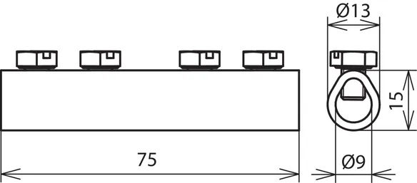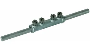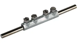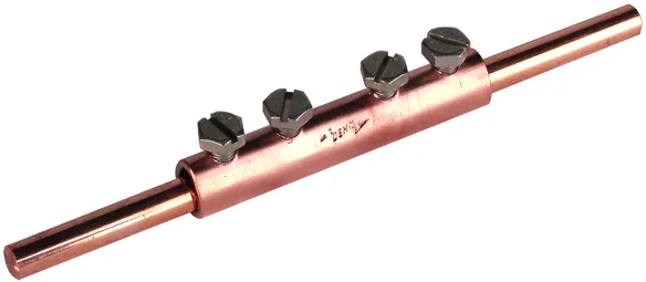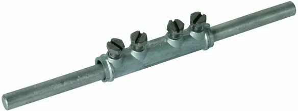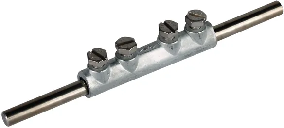 For longitudinal connection of two round conductors with four screws.