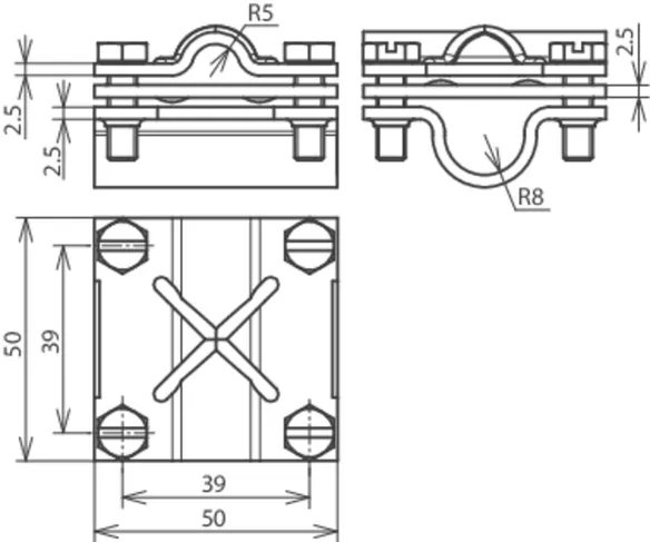 Cross units for aboveground connections without intermediate plate, Cu
