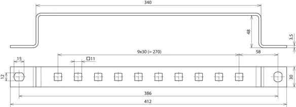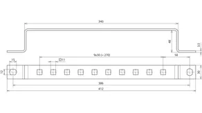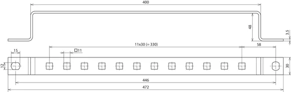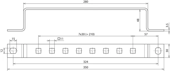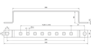 Earthing busbars for screwing on steel contructions, hole spacing 35 mm.For connecting:
