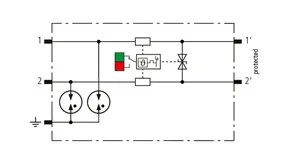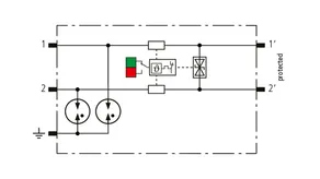 Space-saving, modular lightning current arrester with a width of 6 mm and push-in connection technology with status indication for protecting two single lines for lightning equipotential bonding as well as indirect earthing of shielded cables. With signal disconnection for maintenance purposes.