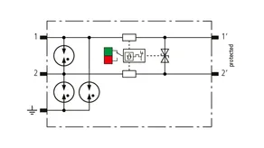 Space-saving, modular surge arrester with a width of 6 mm and push-in connection technology with status indication for protecting 2 lines of stranded unearthed signal interfaces with a nominal voltage of 230 V. With signal disconnection for maintenance purposes.