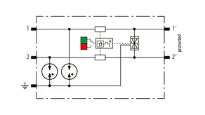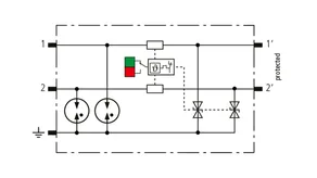 Space-saving, modular surge arrester with a width of 6 mm and push-in connection technology with status indication for protecting 2 lines of stranded unearthed signal interfaces with a nominal voltage of 230 V. With signal disconnection for maintenance purposes.