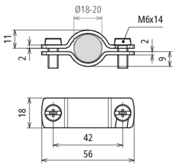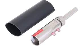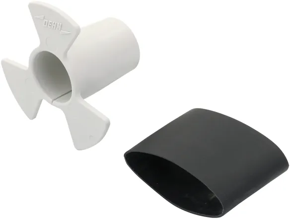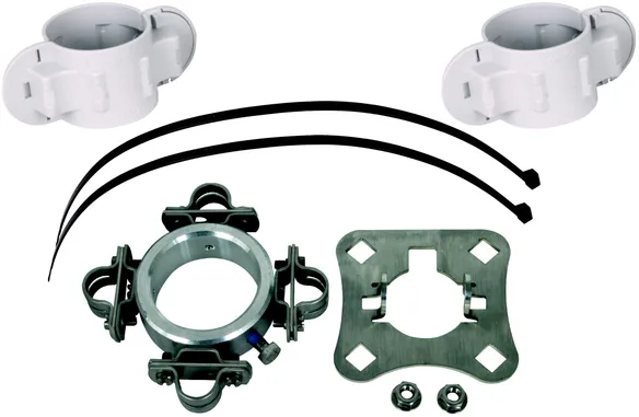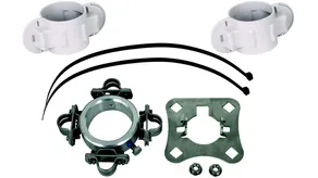 Fixing kit for installation of the HVI long Conductor on HVI long supporting tubes, consisting of a connection plate (4x, including two self-locking nuts with serrated bearings) and a fixing ring with four slotted conductor holders (Ø20 mm) for the sealing end (including two cable ties with plastic holder halves).