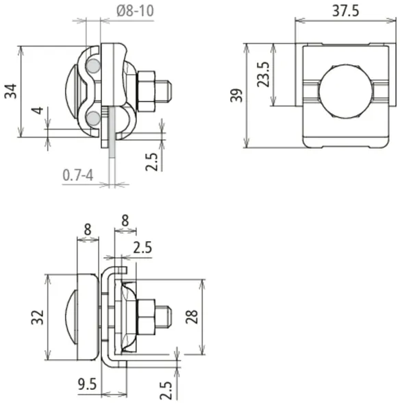 Bimetallic seam clamps with intermediate plate (St/tZn/Cu)