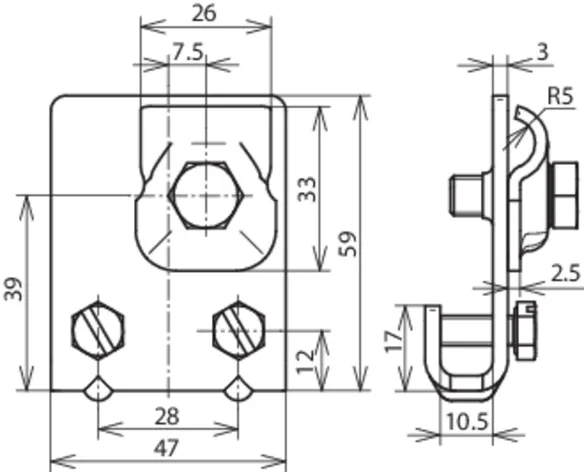 Seam clamp with two-screw clamp under hooking at seams, Cu