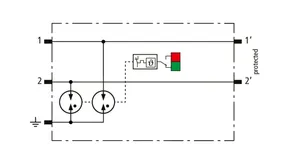 Space-saving, compact surge arrester with a width of 6 mm and push-in connection technology with status indication. Finely limiting, single-stage surge protection with powerful diodes for protecting two single cores sharing a common reference potential as well as unbalanced interfaces.