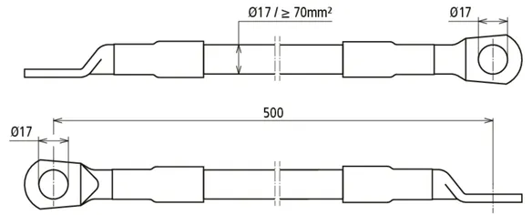 The earthing connectors are designed for earthing, return circuits and equipotential bonding in railway line applications. The halogen-free version D BEB 29 / the halogen-free and flame-retardant version D BEB 29-NF – for the external connection of earth connection points and other connection elements – is designed with a cable lug version for M16 connections. These earthing connectors consist of a copper-steel-aluminium cable, thus representing a preventive anti-theft measure. These earthing connectors also have the technical approval of DB Netz AG and can be used there without hesitation in planning. With the halogen-free and flame-retardant version, use in tunnels is possible as per EU regulations.