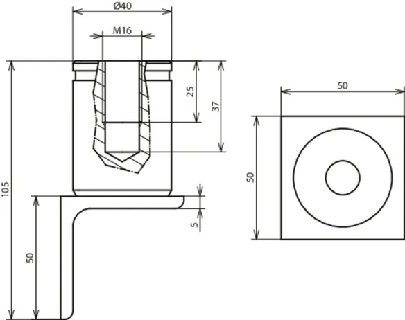Diameter of connection plate 40 mm