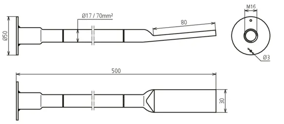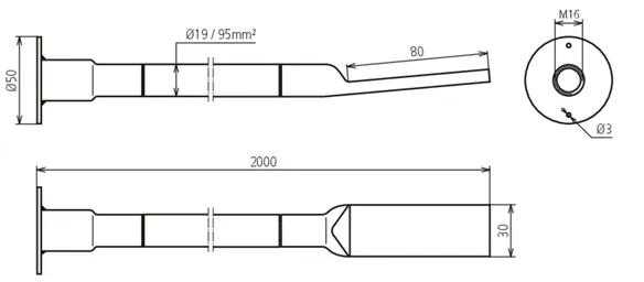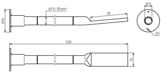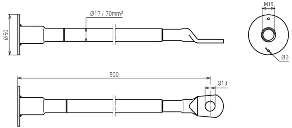 Borehole cable lug: 13 mm for M12 and 17 mm for M16