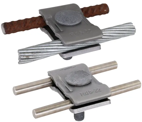 For cross connections of round conductors (6-10 mm) or for fixing and simultaneous connection of fixed earthing terminals.