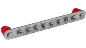 Equipotential bonding bar, industrial design, 10 terminals w. insulators, StSt