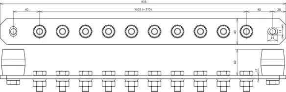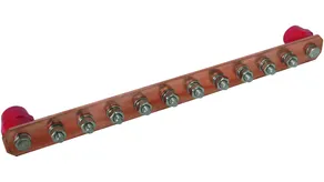 Equipotential bonding bar, industrial design, 12 terminals w. insulators, Cu
