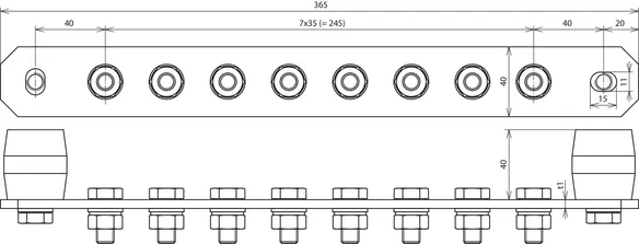 Dimensions (l x w x d1) 365 x 40 x 5 mm