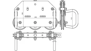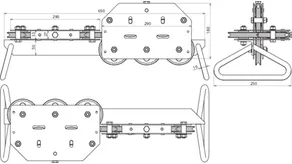 10 guide pulleys, movable on rubber wheels