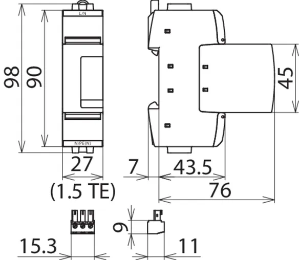 with remote signalling contact, width: 1.5 modules