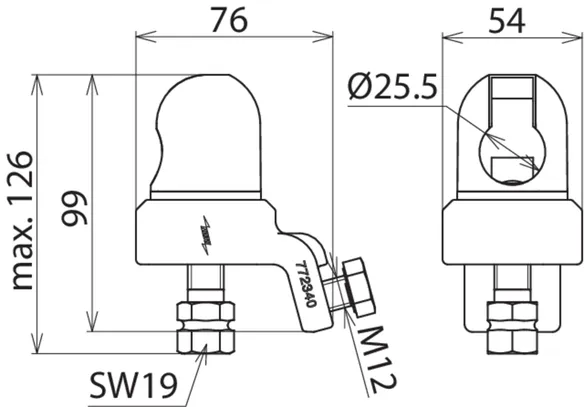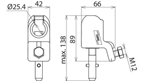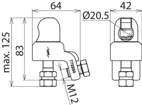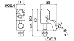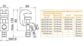 *) See table for „Clamping range and maximum cable cross-section of universal clamps used for“