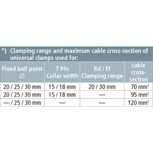 *) See table for „Clamping range and maximum cable cross-section of universal clamps used for"