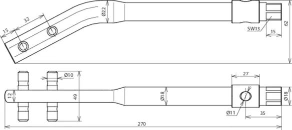 Width across flats (A/F 13) for screwing.