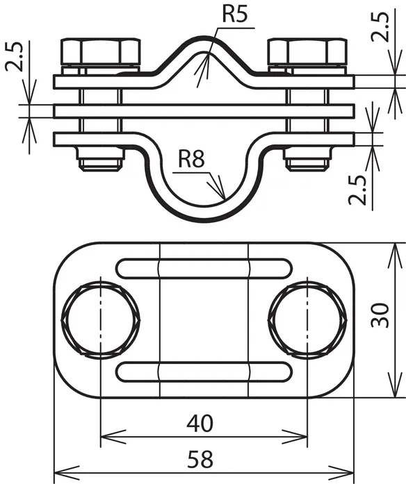 UNI disconnecting clamp (200 kA) for two round conductors, StSt