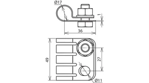 Fixing bolt for spanning cables to an air-termination rod (Ø22 / Ø16 mm) or to a connection plate (e.g. Part No. 819 289 or 819 288).