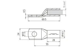 Crimped cable lug DIN 46235 70 mm² M10