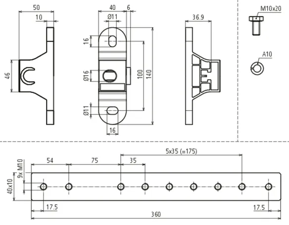 Cable lug hole M10