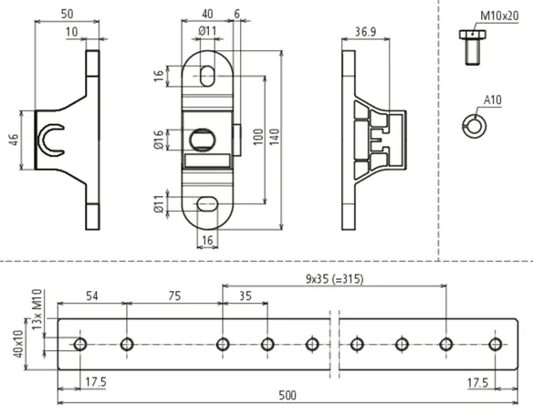 Connection Rd/Fl 1x flat conductor 30/40 mm or 1x round conductor 10 mm