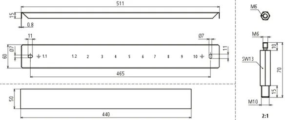 Connections: 1x flat conductor 30/40 mm or