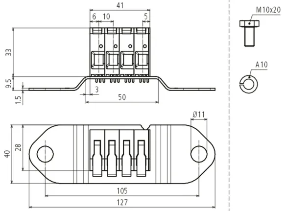 70 mm² (Rm/Rf) / StSt 40x10 mm: 1100 A / T4