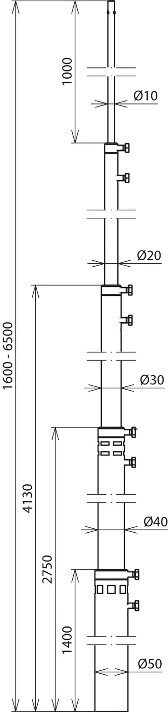 Termination mast (Ø length) 50/40/30/20-5500 mm