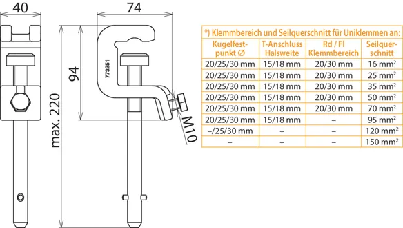 Anti-rotation cable lug PK2 (Ø10.5 mm)