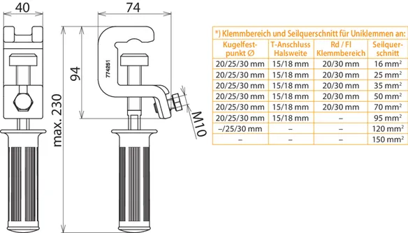 For profile-free earthing of track profiles S49, S54, S64 and UIC60.