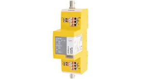 Compact 3-in-1 surge arrester for protecting analogue camera systems. Protection of the video signal (BNC connection), a data signal (RS485) and a voltage supply (230 V a.c.). Direct plug-in technology allows fast conductor connection without tools. Easy replacement of the arrester is ensured by the integrated terminal units which can be released and then removed from the enclosure. Integrated overload indication (230 V).